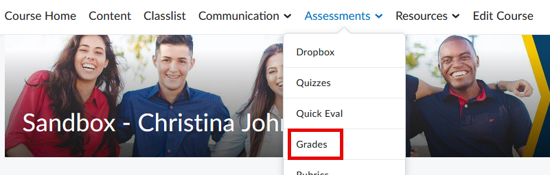 - Go to Assessments on the main navigation to select Grades from the dropdown menu.