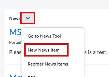 - From the News dropdown, select New News Item.