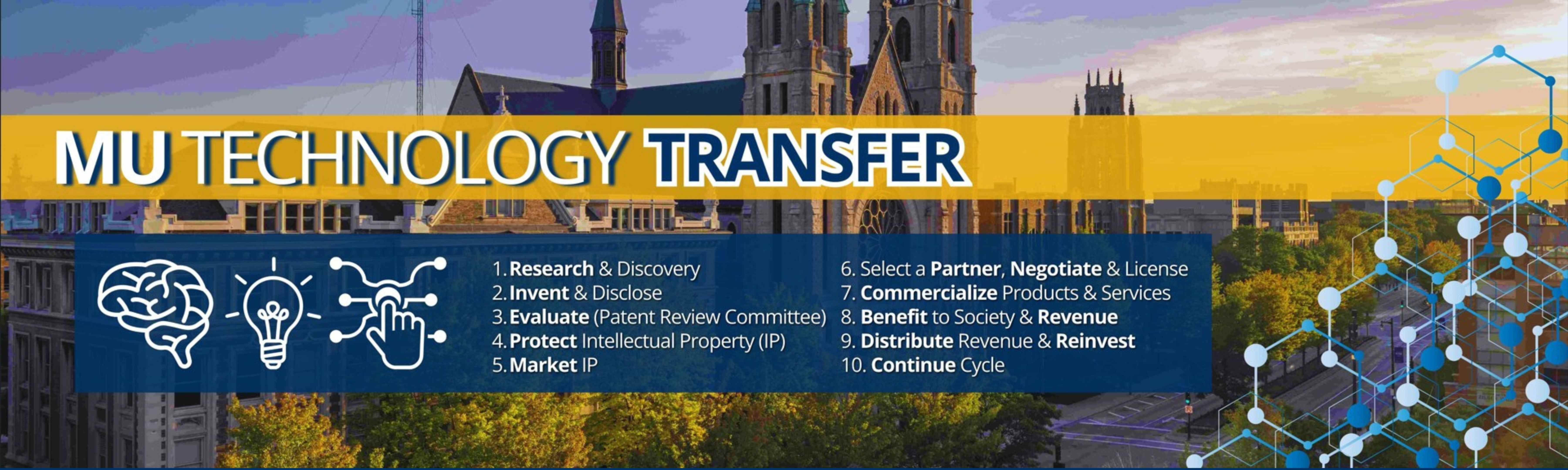 At Marquette, technology transfer refers to the responsible licensing of university technology to third parties and the formation of new companies for the benefit of society. The technology transfer process can be viewed as a continuous cycle, beginning with basic research and discovery that yields technologies that can form the basis of innovative products and services to address unmet needs of society.