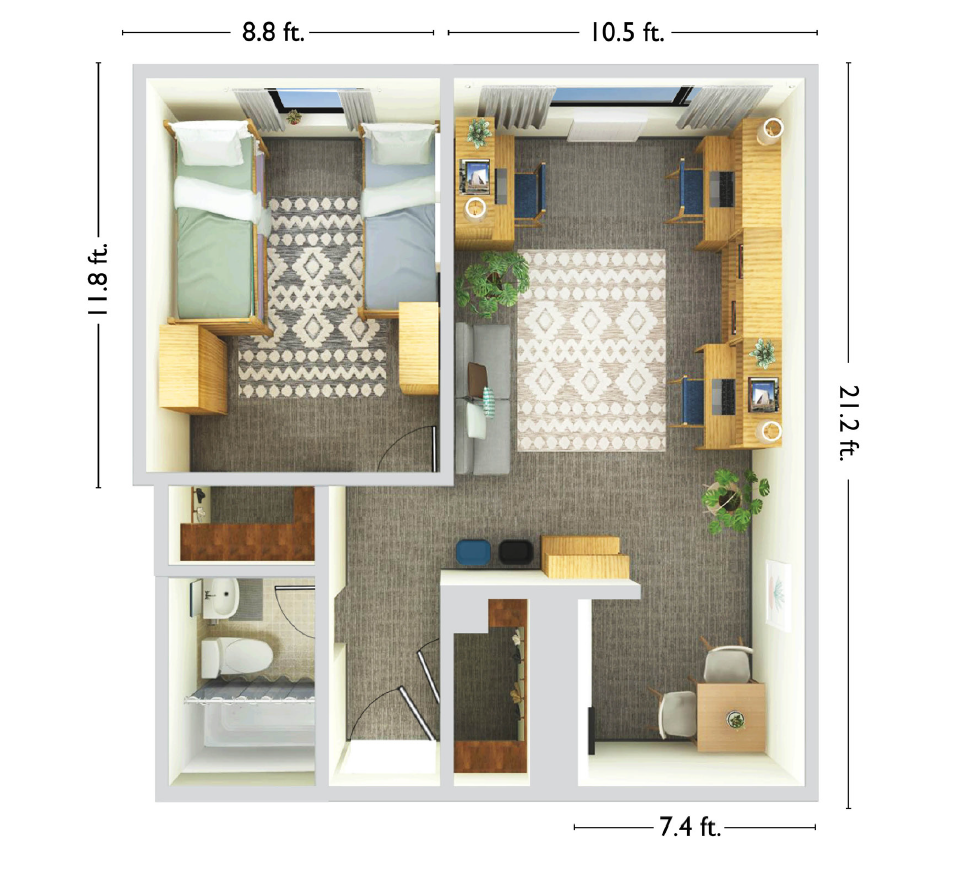 Abbottsford Hall is a residence hall in the center of campus which houses first-year students only. It is co-ed by floor. The building consists of triple room-types and has 24/7 Security. The building has private bathrooms in each room. Abbottsford is the home to the Business Living-Learning Community.